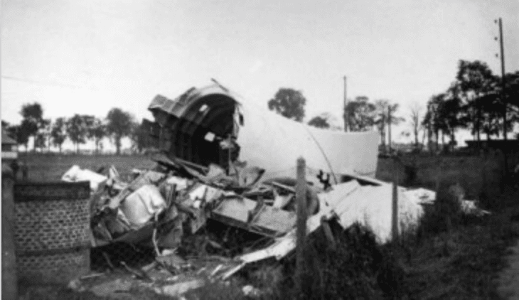 Le 30 août 1940, au tout début de la guerre l’entrepôt occupé par les Allemands et où est stocké l’avion brûle.